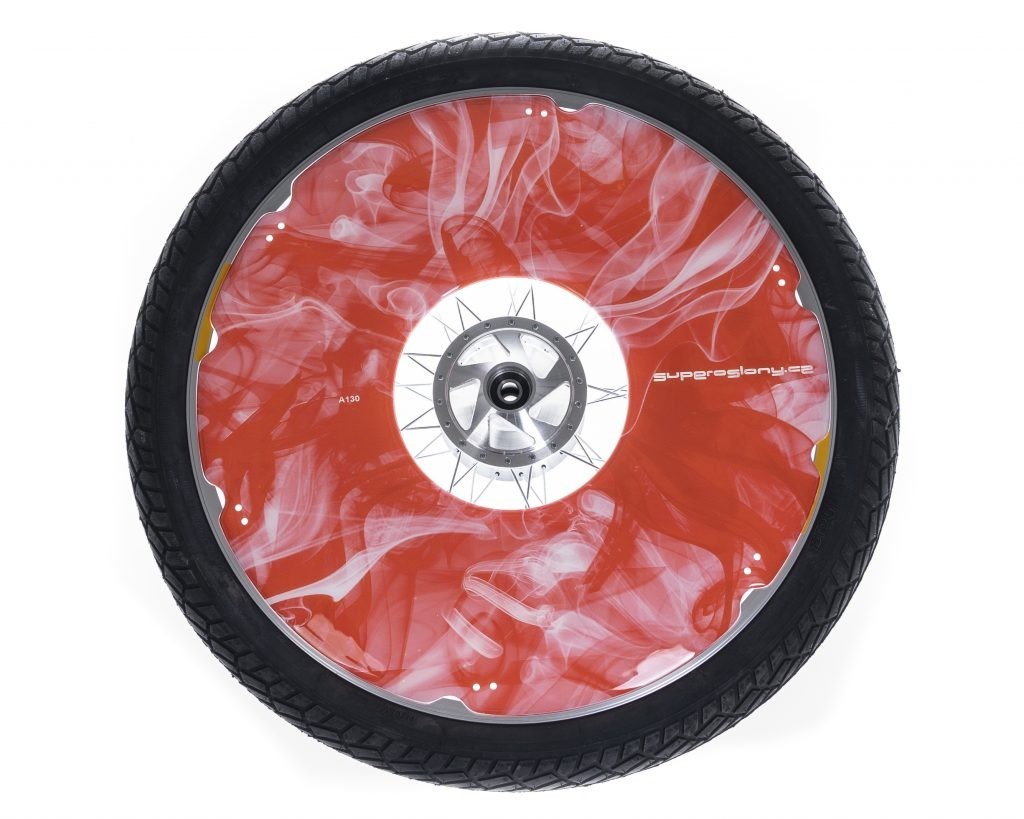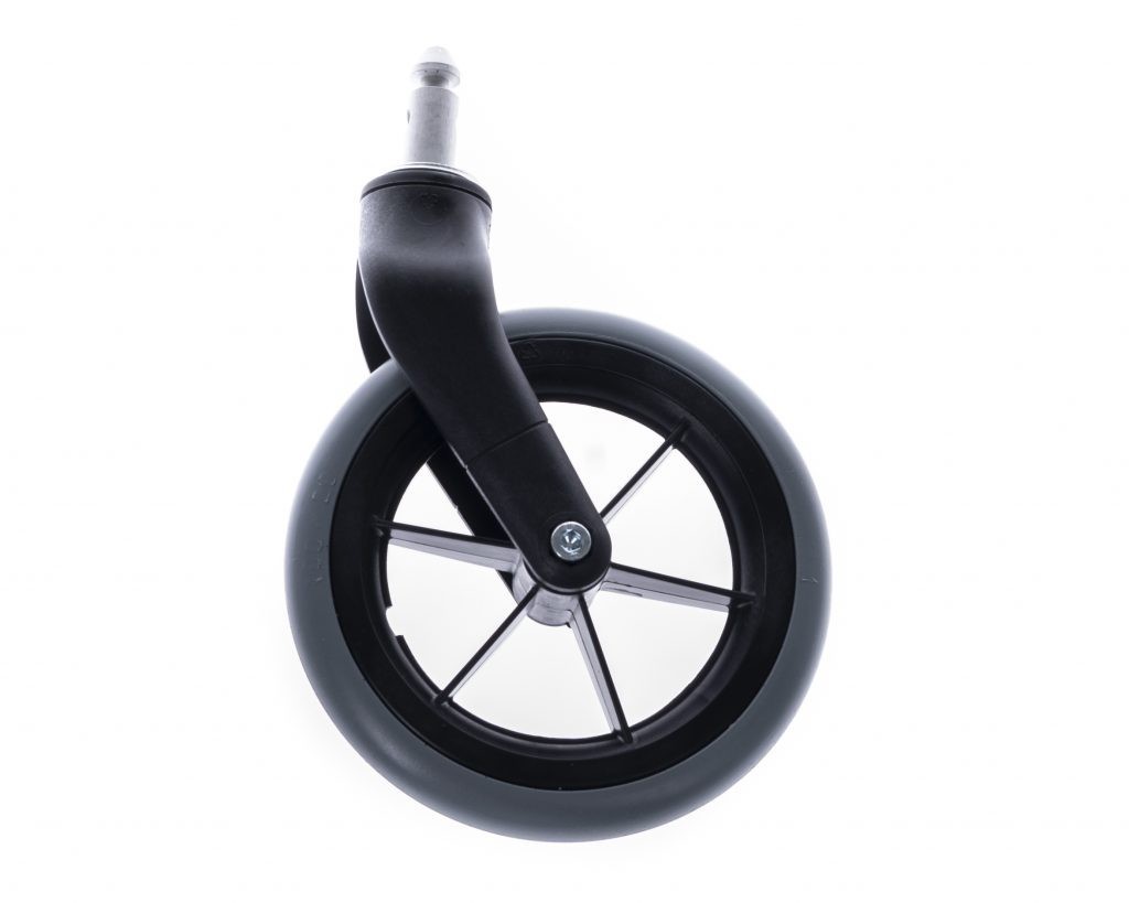 As with e.g. outdoor sports strollers, the slanted wheels ensure safe handling of terrain irregularities, stones, etc. The stroller simply won't tip over.