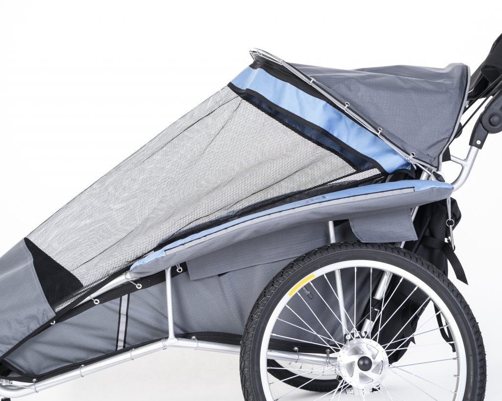 - for a walk in the city for shopping - into nature (the stroller can handle even difficult terrain) - on roller skates - for running and jogging - connection behind the bike (stroller contains a complete bike set) - for snow and skying (winter set can be ordered)
