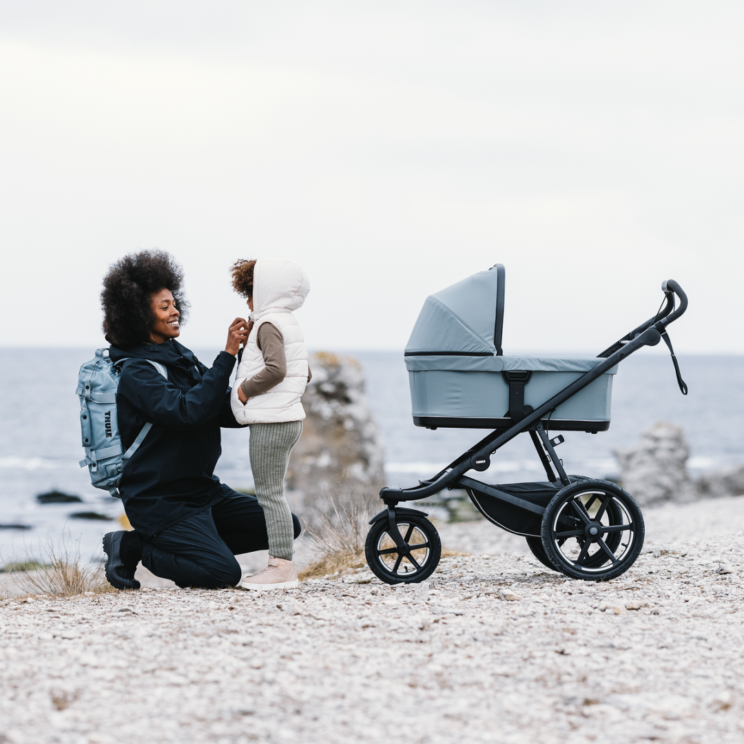 - Ready from day one: Can be used from birth with Thule bassinet or infant car seat adapter (sold separately). Seat and canopy fabric can be removed to create a clean look